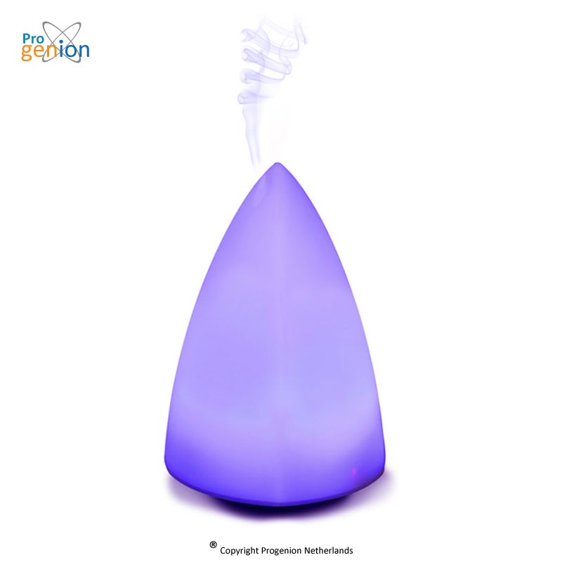 Ce nébuliseur triangulaire en verre dépoli avec éclairage est vraiment un atout pour votre maison. Le verre dépoli élégant et le brouillard au-dessus offriront un beau spectacle. Le brouillard est en fait éclairé par l'éclairage LED qui peut être fixée sur une couleur particulière mais qui peut aussi changer progressivement. Tout cela fait de ce diffuseur d'arôme non seulement un appareil agréable à regarder, mais le nébuliseur a aussi quelques fonctionnalités utiles. En effet, vous pouvez ajouter quelques gouttes de votre huile essentielle préférée à l'eau et ainsi une merveilleuse odeur se propage dans l’espace.