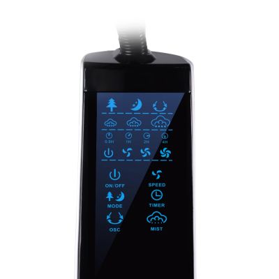 Fonction brume / brouillard La fonction brume peut être activée séparément ou en combinaison avec la ventilation. Lorsque la fonction brume est sélectionnée, le témoin correspondant sur le panneau de commande s'allume, en fonction de la vitesse choisie (basse/moyenne/élevée). Fonction de minuterie Lorsque l'appareil est en fonctionnement, vous pouvez régler la minuterie pour que le ventilateur s'arrête automatiquement après la durée définie. Appuyez plusieurs fois sur le bouton de la minuterie pour régler la période souhaitée.